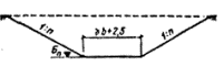 Расстояние между внешней бровкой резерва и границей полосы отвода должно быть не менее 1 м. В районах распространения подвижных песков резервы следует размещать согласно требованиям разд. 9 настоящих Указаний. 11.3. Между подошвой откоса насыпи и бровкой резерва необходимо оставлять берму шириной не менее 3 м для железных дорог и не менее 2 м для автомобильных дорог. У насыпей высотой до 2 м на сухом основании ширину берм разрешается уменьшать до 1 м; автодорожные насыпи высотой до 1,5 м, возводимые из резервов, допускается проектировать без берм (см. рис. 6, а; 7). Со стороны будущего второго пути железных дорог I -III категорий ширину бермы следует назначать равной 7,1 м. Бермам с нагорной стороны необходимо придавать поперечный уклон от 0,02 до 0,04 в сторону резерва за счет срезки или присыпки грунта применительно к рис. 4, а, б. 11.4. Резервы необходимо, как правило, включать в общую систему водоотводных устройств, ограждающих земляное полотно от воздействия поверхностной воды, или предусматривать отдельные выпуски воды из резервов в пониженные места прилегающей местности, согласно требованиям разд. 12 настоящих Указаний. 11.5. Замкнутые резервы без водоотводов допускается применять на участках с дренирующими грунтами в районах с засушливым климатом и в районах распространения подвижных песков. 11.6. Дну резервов, входящих в общую систему водоотводных устройств, необходимо придавать поперечный и продольный уклоны. Поперечный уклон должен быть не менее 0,02, а продольный - не менее 20/00. Дно резерва при его ширине до 10 м следует проектировать односкатным с поперечным уклоном от земляного полотна, а при ширине более 10 м -двускатным, с уклоном от краев резерва к его середине. Наибольший продольный уклон резерва с низовой стороны насыпи не должен превышать 80/00, а для легкоразмываемых грунтов 50/00. Уклон дна резервов с нагорной стороны насыпей следует назначать по расчету в зависимости от вида грунта, количества и скорости течения воды. В случаях, когда по условиям рельефа местности продольный уклон дна резерва получается круче допускаемого по размываемости грунта, резервы следует проектировать отдельными участками с наибольшим допустимым уклоном дна. Между соседними участками резерва необходимо оставлять полосы ненарушенного грунта шириной не менее 3 м, а в местах сопряжения нижнего участка резерва с косогором - не менее 2 м и предусматривать в них устройство канав с перепадами высотой до 0,5 м, согласно требованиям разд. 12 настоящих Указаний. 11.7. Откосы резервов следует проектировать не круче 1:1,5. 11.8. Размеры резервов следует назначать по условиям потребности в грунте, а глубину, кроме того, - с учетом параметров применяемых землеройных машин и требований по устройству продольного водоотвода. При невозможности или нецелесообразности увеличения глубины резерва, используемого в качестве водоотвода, а также в резервах с продольным уклоном менее 50/00 для пропуска воды следует проектировать водоотводную канаву с размещением ее в пониженной части резерва. Поперечные размеры, продольный уклон и тип укрепления канавы следует назначать согласно требованиям разд. 12 и 16 настоящих Указаний. 11.9. На поймах рек закладка резервов допускается в исключительных случаях, причем: расположение резервов необходимо увязывать с регуляционными сооружениями; расстояни