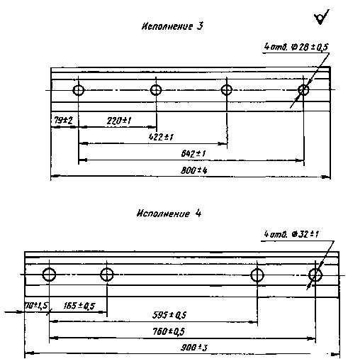 Дата введения 01.01.75 Настоящий стандарт соответствует СТ СЭВ 1669 в части конструкции и размеров. (Измененная редакция, Изм. № 2). 2. Конструкции и размеры поперечного сечения накладок должны соответствовать указанным на черт. 1. Черт. 1 * Размеры для справок. Примечания: 1. Радиусы закруглений, не указанные на чертеже, выполняют размером (4±2,0) мм. 2. Размеры, на которые не установлены предельные отклонения в готовых накладках, должны обеспечиваться технологией. Предельные отклонения не должны превышать ±1,0 мм. 3. В скобках указаны размеры для накладок, не рекомендуемых к применению. (Измененная редакция, Изм. № 1, 2, 3). 3. Длина накладок, расположение и размеры болтовых отверстий с наружной стороны должны соответствовать указанным на черт. 2 и 3. Исполнение накладок устанавливают по согласованию между изготовителем и потребителем. Черт. 2 * Размеры для справок. Примечание. Размеры отверстий указаны со стороны продавливания. Черт. 3 Пример условного обозначения накладки к рельсам типов Р65 и Р75 в исполнении 1: Накладка 1Р65 ГОСТ 8193-73 То же, в исполнении 2: Накладка 2Р65 ГОСТ 8193- 73. (Измененная редакция, Изм. № 1, 2). 4. Расчетные данные конструкции накладок приведены в приложении 1. 5. Технические требования - по ГОСТ 4133. 4, 5. (Введены дополнительно, Изм. № 2). 6. (Исключен, Изм. № 1). 7. (Исключен, Изм. № 2). Справочное Расчетные данные Площадь поперечного сечения проката, см2............. 38,45 (38,75) Расстояние до центра тяжести, см: от верха накладки......................................................... 6,42 от низа накладки.......................................................... 6,33 от внешней грани......................................................... 2,01 Угол наклона осей к горизонту: главной.......................................................................... -3º 22’ нейтральной.................................................................. 27º 46’ Момент инерции, см4: относительных центральных осей: горизонтальной............................................................ 524,3 (528,0) вертикальной................................................................ 52,0 (53,3) центробежный.............................................................. 27,8 (-28,05) относительно главных осей: наибольший................................................................... 526,4 (530,0) наименьший.................................................................. 51,2 (51,6) Момент сопротивления, см3: по верху......................................................................... 82,4 (82,5) по низу........................................................................... 83,6 (83,8) по внешней грани (наибольший)................................ 26,4 (26,5) Масса, кг 1 м проката.................................................................... 30,18 (30,42) накладки исполнения 1............................................... 29,26 (29,50) накладки исполнения 2............................................... 23,59 (23,78) накладки исполнения 3............................................... 23,74 (23,93) накладки исполнения 4............................................... 26,63 (26,85) Примечания: 1. Масса определена исходя из номинальных размеров и относительной плотности стали 7,85. 2. В скобках указаны конструктивные расчетные данные для накладок, изготовляемых на нереконструированных прокатных станах. ПРИЛОЖЕНИЕ 1. (Измененная редакция, Изм. № 3). ПРИЛОЖЕНИЕ 2. (Исключено, Изм. № 3). ИНФОРМАЦИОННЫЕ ДАННЫЕ 1. РАЗРАБОТАН И ВНЕСЕН Министерством путей сообщения СССР РАЗРАБОТЧИКИ В.Ф. Афанасьев, канд. техн. наук; К.И. Красиков, канд. техн. наук; А.К. Гучков; А.К. Кузнецов; В.И. Гришина; С.И. Рудюк; В.Ф. Коваленко; Л.Ф. Кузнецов; В.И. Багузин 2. УТВЕРЖДЕН И ВВЕДЕН В ДЕЙСТВИЕ Постановлением Государственного комитета стандартов Совета Министров СССР от 14.09.73 № 2159 3. Стандарт соответствует СТ СЭВ 1669-79 в части конструкции и размеров 4. ВЗАМЕН ГОСТ 8193-5