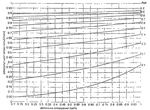 Примечание. hкp - критическая глубина, при которой процесс пучения прекращается. Если hпр > hкр, то в расчет вводят hкp = hnp. Величина Woccp определяется по формуле Woccp = Wo + Womн(Wnв - Wo), (4) где Wo - начальная влажность грунта земляного полотна (весовая), доли единицы; Wnв - влажность полной влагоемкости грунта (весовая), доли единицы; DWomн - отношение осеннего приращения влажности к максимально возможной величине. Значение Wnв вычисляется из соотношения: Wnв = 1/rd - 1/rs. (5) Рис. 2. Номограмма определения для Wотн при Fоh = 0,1 до 1 Величина DWomн устанавливается по номограмме рис. 2 в зависимости от параметра Параметр hв принимается по данным изысканий (обследований), а hа, необходимый для использования номограммы рис. 2, определяется по формуле hА = 160 - hДО, (7) где hДО - суммарная толщина слоев дорожной одежды, см. Среднее значение весенней влажности Wвeccp находим из выражения Wвeccp = Wh + (Woccp - Wh)C, (8) где Wh - влажность грунта по жидкой фазе в зоне первичного льдовыделения (при температуре грунта от минус 0,5 до минус 1,0 °С). Значения Wh для разных грунтов приведены в табл. 1; С - коэффициент, определяемый по графику рис. 3 в зависимости от величины критерия зимнего влагонакопления Z, вычисляемого, в свою очередь, из соотношения Рис. 3. График коэффициента С для расчета весенней влажности Характеристика скорости промерзания грунта земляного полотна a определяется из соотношений: 1. При коэффициенте влагопроводности грунта до 2,0 см2/ч: а) для автомобильных дорог I - II категорий a = 3,24 + s0,079 - 0,05×h's, (10) где h's - толщина слоя эффективной теплоизоляции (пенопласт, пеноплэкс), см; s - характеристика суровости зимнего периода, определяемая для соответствующего региона из табл. 2; б) для автомобильных дорог III - IV категорий a = 3,24 + s0,079 - 0,013×h¢s, (11) где h¢s - толщина слоя теплоизоляции только из местных материалов (керамзит, керамзитобетон, шлак, золошлаковая смесь, укрепленная цементом и др.); 2. При коэффициенте влагопроводности грунта 2,1 - 5,0 см2/ч: а) для дорог I - III категорий a = 1,24 + 0,72×lns - 0,05×hs; (12) б) для дорог IV - V категорий a = 1,24 + 0,72×ln s - 0,013×h¢s. (13) При Foh > 1 Womн практически не зависит от ha/hb, поэтому приводим значения Womн в зависимости от Foh в табличной форме