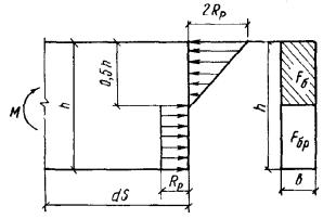 где gв - объемный вес воды; H и h - заглубления соответственно верховой и низовой точек (А и В на рис. 2) под уровнями воды верхнего и нижнего бьефов. Примеры расчета к пп. 3.1 - 3.8Пример 4. Дано. Изгибаемый бетонный элемент прямоугольного сечения (рис. 3). Требуется вывести расчетную формулу. Расчет. Из условия равновесия элемента малой длины ds имеем