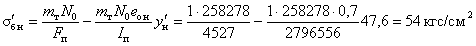 Напряжения в бетоне на уровне арматуры Fн и F'н от действия силы N0 с коэффициентом точности натяжения арматуры mт = 1:
