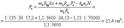 Принимаем F'а = 2 Æ 22 (F'а = 7,6 см2). Предельно допустимая высота сжатой зоны бетона x = xRh0 = 0,48×74,5 = 35,8 см. Площадь сечения напрягаемой арматуры в полке