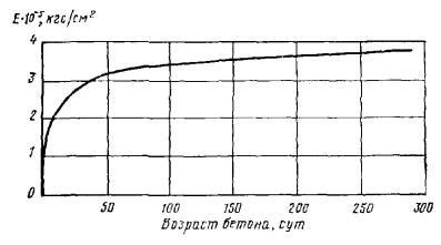 При установлении марки бетона по прочности на сжатие и начального модуля упругости Eб в возрасте 180 дней значения модуля упругости в меньшем возрасте рекомендуется определять умножением значений Eб, принимаемых по табл. 9, на коэффициенты, приведенные в табл. 12, а также в соответствии с п. 5.21. Начальный коэффициент поперечной деформации бетона μ = 0,15, модуль сдвига G = 0,4 Eб. Объемный вес тяжелого бетона при отсутствии опытных данных допускается принимать равным 2,3 - 2,5 тс/м3. Для уточнения объемного веса бетона рекомендуется пользоваться табл. 13. Таблица 12