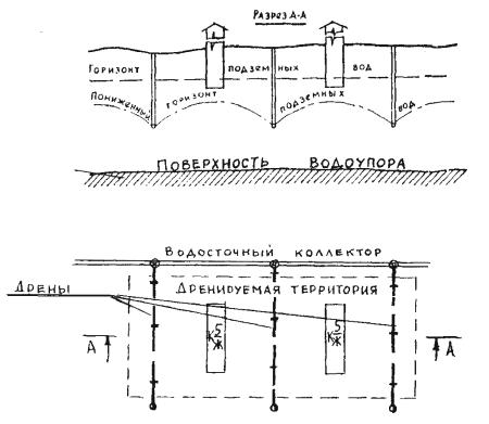 Рис. 8 Схема кольцевого дренажаРис. 9 Схема пластового дренажаРис. 10 Схема прокладки дренажа над водостокомРис. 11 Труба асбестоцементная с водоприемными отверстиями и с заделкой стыковРис. 12 Труба поливинилхлоридная с водоприемными отверстиями и с заделкой стыковРис. 13 Труба гофрированная из полиэтилена низкого давления с водоприемными отверстиями заводского изготовленияРис. 14 Пристенный дренаж с применением поливинилхлоридных труб на бетонном основание и дренажной оболочки «Дрениз»Рис. 15 Пристенный дренаж с применением асбестоцементных труб на свайном основании с засыпкой пазух песком | |||||||||||||||||||