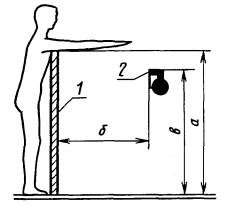 1 - ограждение; 2 - опасный элемент. (Введен дополнительно, Изм. № 1). ПРИЛОЖЕНИЕ Рекомендуемое Высота ограждения в зависимости от расположения опасного элемента