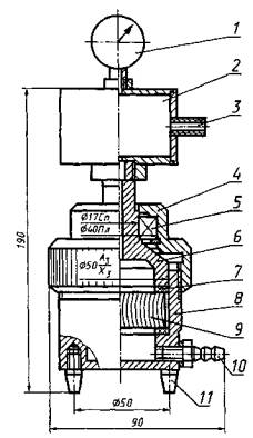 Дата введения 01.01.78 Настоящий стандарт распространяется на древесину и устанавливает метод определения ее газопроницаемости вдоль и поперек волокон в радиальном и тангентальном направлениях. 1. МЕТОД ОТБОРА ОБРАЗЦОВ1.1. Изготовление образцов - по ГОСТ 16483.0 со следующими дополнениями: образцы изготовляют в форме цилиндра диаметром 47 мм и высотой 20 мм раздельно из заболони и ядра. В зависимости от исследуемого направления газопроницаемости образцы изготовляют таким образом, чтобы их высота совпадала с продольным, радиальным или тангентальным направлением. Количество образцов для испытания должно быть не менее 10. 2. АППАРАТУРА И МАТЕРИАЛЫ2.1. Для проведения испытаний используют: прибор, обеспечивающий измерение прошедшего через образец газа (черт. 1) со сменной насадкой для подвода газа, снабженной монометром класса точности 0,4 или 0,6 с верхним пределом измерения 0,6 МПа по ГОСТ 2405, и газометром с измерительной трубкой, скорость перемещения уровня жидкости в которой не должна превышать 2,0 мм/с (черт. 2);