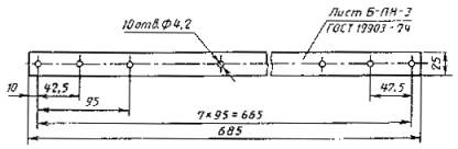 1 - настил; 2 - упор; 3 - уголок; 4 - уголок; 5 - опора; 6 - полоса Оковки к поддонам ПОД - 520ґ1030 - 0,75 и ПОД - 770ґ1030 - 0,9 Уголок (поз.3)