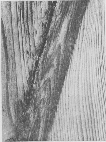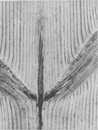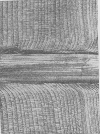 2 - сквозная на тангентальной и торцовой поверхности Черт. 28 Прорость в шпоне (береза)
