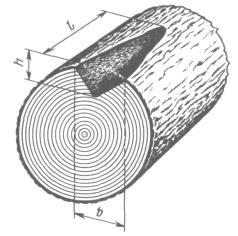 3.2. Измерение трещин 3.2.1. Торцовые трещины метиковую и отлупную измеряют: по наибольшей ширине трещины (черт. 12, размер b); по наименьшему диаметру круга, в который они могут быть вписаны, или по наименьшей ширине неповрежденной периферической зоны торца (черт. 12, размеры соответственно d1, d2, d3 и b1, b2, b3); по наименьшей толщине вырезки, в которую они могут быть вписаны (черт. 12, размеры а, а1). 3.2.2. Торцовую трещину усушки измеряют по глубине. 3.2.3. Боковые трещины (морозную, трещину усушки) измеряют по глубине и длине (черт. 13, размеры соответственно h1, h2 и l1, l2). Если это обусловлено спецификой сортимента, допускается измерять одним из указанных параметров. Морозную трещину допускается измерять по наименьшей толщине вырезки, в которую она может быть вписана (черт. 13, размер а). 3.3. Измерение пороков формы ствола 3.3.1. Сбежистость измеряют по разности между диаметрами нижнего и верхнего торцов, сортимента, отнесенной к его длине, и выражают в сантиметрах на 1 м длины или процентах. В комлевых лесоматериалах нижний конец сортимента измеряют на расстоянии 1 м от нижнего торца. 3.3.2. Округлую и ребристую закомелистость измеряют по разности между диаметрами лесоматериала, измеренными у комлевого торца и на расстоянии 1 м от этого торца (черт. 15, размеры z1 и z2). Ребристую закомелистость допускается, если это обусловлено спецификой сортимента, измерять по разности между наибольшим и наименьшим диаметрами комлевого торца лесоматериала (черт. 15, размера z3) или отношением диаметра комлевого торца к диаметру на расстоянии 1 м от этого торца. (Измененная редакция, Изм. № 2). 3.3.3. Овальность ствола измеряют по разности между наибольшим и наименьшим диаметрами соответствующего торца лесоматериала. 3.3.4. Нарост на стволе измеряют по его длине и толщине (черт. 16, размеры l и b). Если это обусловлено спецификой сортимента, допускается измерять один из указанных параметров. За толщину нароста принимается расстояние между поверхностью ствола и линией, проходящей параллельно ей на высоте нароста. 3.3.5. Простую кривизну измеряют по величине стрелы прогиба сортимента в месте его наибольшего искривления и выражают в целых сантиметрах и относят ко всей длине искривления, измеренной в метрах, или в процентах от длины искривления, или в долях диаметра верхнего торца (черт. 17, размер z1), или по величине стрелы прогиба на метровом участке наибольшего искривления. (Измененная редакция, Изм. № 2). 3.3.6. Сложную кривизну характеризуют величиной наибольшего искривления (черт. 17, размер z2), измеряемого аналогично простой кривизне. В случае необходимости измеряют все стрелы прогибов и их величины суммируют. (Измененная редакция, Изм. № 2). 3.3.7. При измерении кривизны комлевых лесоматериалов размер на первом метре от нижнего торца в расчет не принимают. 3.3.8. В круглых лесоматериалах, предназначенных для последующей разделки на чураки, кривизну измеряют отдельно для каждого чурака (черт. 17, размеры z3, z4, z5, z6). 3.4. Измерение пороков строения древесины 3.4.1. Наклон волокон измеряют в наиболее типичном месте боковой поверхности сортимента по величине отклонения направления волокон от линии, параллельной оси сортимента, которое определяют по направлению волокон древесины - на окоренных сортиментах (черт. 19, размер a1), или бороздок коры - на неокоренных сортиментах на протяжении 1 м (черт. 19, размер а2), 