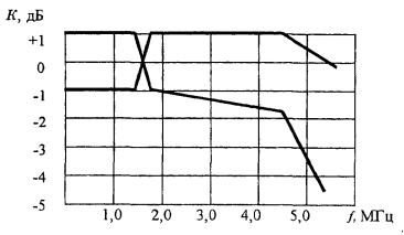 Рисунок Б.1 - Поле допуска характеристики боковых полос в полосе частот от fн.и - 1,25 МГц до fн.и + 6,5 МГц