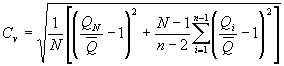 Рисунок А.3 - График зависимости дисперсии параметров объединенной совокупности от числа совместно анализируемых постов Результаты расчета погрешностей определения коэффициента вариации приведены в таблице А.3. Таблица А.3 - Расчет погрешностей определения коэффициентов вариации Сv