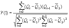 Несмещенную оценку коэффициента автокорреляции между смежными членами ряда r (1) определяют по формуле r (1) = -0,01 + 0,98 где смещенную оценку определяют по формуле