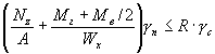 < Rsgc = 133×1 = 133 МПа; прочность поперечных сечений на срез обеспечивается. Проверка прочности продольных сечений По формулам [4], трансформированным к примеру. По формуле (50) на растяжение с изгибом