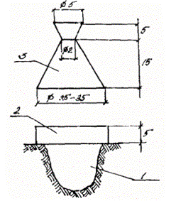 Р - масса пробы бетона, взятой из лунки, г; V - объем сухого песка, необходимого для заполнения лунки и кольца, см3; V0 - объем кольца, см3. Определение плотности свежеуложенного бетона методом засыпки лунки песком: 1 - лунка; 2 - кольцо; 3 - воронка 2. Определение плотности свежеуложенного бетона с помощью прибора КП-120. Для определения плотности свежеуложенного бетона из жесткой бетонной смеси прибором КП-120 в уложенном слое делают лунки диаметром 25 см, а тщательно выбранную из лунок бетонную смесь помещают в резиновые или целлофановые мешки и взвешивают. Для определения объема лунок используют прибор КП-120. Объем лунки, соответствующий объему извлеченного из нее материала, определяют заполнением лунки через резиновый баллон водой из измерительного цилиндра, вытесняемой избыточным давлением, которое создается в цилиндре насосом. Величина объема лунки находится по разности уровней воды в цилиндре до и после заполнения лунки. Среднюю плотность свежеуложенного бетона (ζсв.б.) определяют по формуле