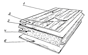 1.6. Покрытие пола из ламинат-паркета всегда укладывается «плавающим способом» без жесткого крепления к основанию (см. рис. 1). Для склеивания досок в шпунтовом соединении между собой (паза и гребня) применяются клеевые составы. Рис. 1. Конструкция пола с покрытием из ламинат-паркета: 1 - бетонная плита или стяжка; 2 - выравнивающая полимерцементная стяжка; 3 - пленка полиэтиленовая; 4 - подложка (гофрированный картон или вспененный полиэтилен); 5 - шпунтовое соединение (склеивание) ламинат-паркета; 6 - ламинат-паркет 1.7. В местах примыкания пола к стенам, перегородкам, колоннам, трубопроводам и другим конструкциям, выступающим над полом, следует устанавливать плинтусы (галтели). 1.8. Во время устройства покрытия пола из ламинат-паркета температура воздуха в помещениях, измеряемая в холодное время года около дверных и оконных проемов на высоте 0,5 м от уровня пола, должна быть не ниже 15 °С, относительная влажность воздуха не должна превышать 60 %. Такой температурно-влажностный режим необходимо поддерживать круглосуточно до сдачи объекта в эксплуатацию. 1.9. Элементы окаймления покрытия пола у каналов, лючков, температурно-усадочных швов и т.п. следует монтировать до устройства покрытия. 1.10. Все применяемые при устройстве покрытия пола материалы должны соответствовать требованиям действующих стандартов и технических условий. 2. МАТЕРИАЛЫ И ТРЕБОВАНИЯ К НИМ2.1. Ламинат-паркет или ламинированное напольное покрытие представляет собой многослойный материал (см. рис. 2), который подразделяется на множество типов (свыше 30) по износостойкости (истираемости лицевой поверхности), влагостойкости, конструкции. 2.1.1. В связи с тем, что в России отсутствуют стандарты на ламинированное напольное покрытие, при подборе, подготовке и определении физико-механических характеристик указанных покрытий следует пользоваться европейскими стандартами. В соответствии с европейскими нормами (ЕН) ламинат-паркет подразделяется на три основных типа: для помещений с низкой интенсивностью передвижения людей (спальни, кладовые); для помещений со средней интенсивностью передвижения людей (прихожая, гостиная, столовая, детская); для помещений с высокой интенсивностью передвижения людей (офисы, кафе, рестораны, магазины). Если потребитель использует ламинат-паркет в соответствии с приведенной классификацией, то на покрытие распространяется гарантия производителя. При выборе ламинат-паркета для устройства покрытия пола в помещениях в зависимости от их назначения (использования) и нагрузок следует руководствоваться показателями, приведенными в Приложении 1, а по конструктивным особенностям - в Приложении 2. 2.1.2. Ламинат-паркет первой и частично второй группы изготавливается из прессованного картона или древесностружечной плиты (ДСП), на верхнюю часть которого нанесен тонкий декоративный защитный слой. От него зависят прочность и устойчивость к истиранию. Рис. 2. Строение ламинированного напольного покрытия - доска ламинат-паркета: 1 - защитный (лицевой) слой - ламинат; 2 - декоративный слой; 3 - слои крафт-бумаги; 4 - древесноволокнистая плита высокой плотности; 5 - влагостойкий стабилизирующий слой Основой ламинат-паркета третьей группы является древесноволокнистая плита (ДВП) высокой плотности (950 кг/м3). С обеих сторон на ДВП наклеен слоистый материал, полученный под высоким