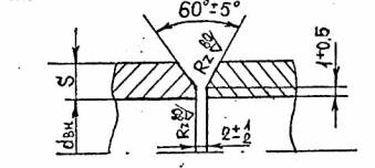 Примечание: При смещении более указанного в табл. 2 производится раздача или расточка трубы под углом 10о ± 30 2.2. Если разница в номинальной толщине концов арматуры, привариваемых к трубопроводу, по наружному диаметру составляет не более 30% толщины стенки трубопровода и не превышает 5 мм, то допускается применять сварные соединения без предварительного утонения- стенки арматуры, причем наклон поверхности шва должен обеспечить плавный переход от арматуры к трубопроводу. 3. При сварке арматуры с трубопроводом из разнородных марок сталей, необходимо предусмотреть проектантом в заводских условиях приварку переходников к арматуре из стали идентичной марки стали трубопровода. Допускается по согласованию с заказчиком не приваривать переходники. 4. Подготовка кромок патрубков