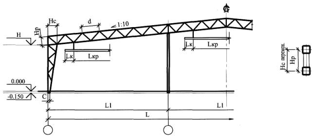 4.2. Рамные конструкции каркасов УНИТЕК рассчитаны на сочетание вертикальных и горизонтальных нагрузок. Подбор сечений рамных конструкций (крайних стоек и ригелей) производится по расчетным кодам вертикальной нагрузки, который определяется в зависимости от базового кода вертикальной нагрузки на покрытие.
