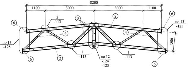 3.4. Прогоны покрытия выполнены по разрезной схеме. Шаг прогонов покрытия принимается равным 1.5 или 3.0 м в зависимости от нагрузки на покрытие и несущей способности кровельных ограждающих конструкций. Сечения прогонов покрытия приняты из прокатных и гнутых швеллеров.