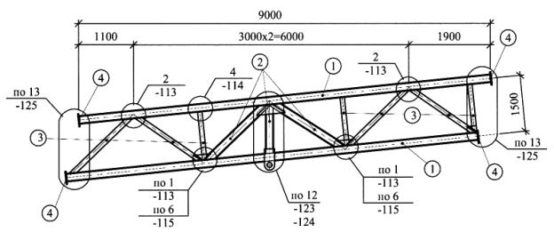 4.1. Расчет конструкций произведен в соответствии с главами СНиП II-23-81* "Стальные конструкции. Нормы проектирования", СНиП 2.01.07-85* "Нагрузки и воздействия", СНиП II-7-81* "Строительство в сейсмических районах", "Пособием по проектированию стальных конструкций (к СНиП II-23-81*)", "Руководством по проектированию стальных конструкций из гнутосварных замкнутых профилей", М., 1978 г.