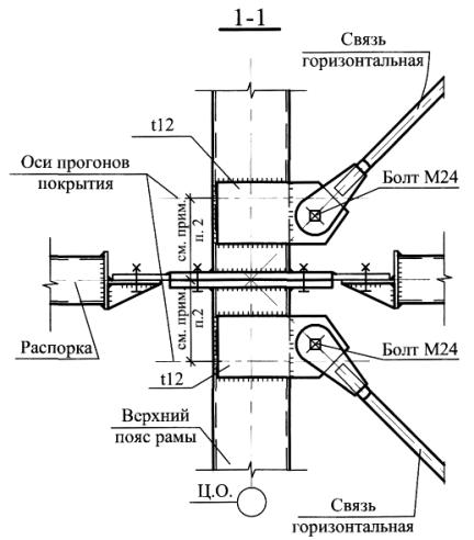 3.3. Устойчивость и геометрическая неизменяемость здания обеспечивается: в поперечном направлении - конструкциями несущих рам; в продольном направлении - системой вертикальных связей и распорок.