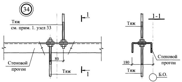 3.5. Прогоны стен выполнены по разрезной схеме. Шаг стеновых прогонов назначается от 1.2 до 3.0 м кратным 0.6 м в соответствии с расположением окон, ворот и других проемов, а также в зависимости от вертикальной и горизонтальной нагрузок и несущей способности стеновых ограждающих конструкций.