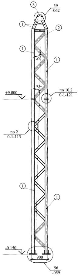 - двухветвевые решетчатого типа из гнутосварных труб (для связевых блоков);