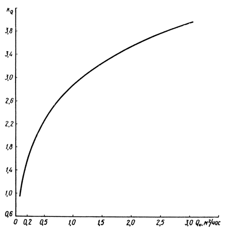 KQ - коэффициент изменения величин сопротивления в зависимости от производительности установки (рис.2). Зависимость средней скорости транспортирования от производительности установки определяется по формуле