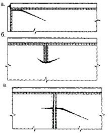 достигать 2 млн. циклов и более, а общая длина трещин до 6. В подавляющем числе случаев на стадии стабильного роста развитие ветвей трещин происходит несимметрично и неравномерно. Одна из ветвей может существенно опережать рост другой даже при внешне равных условиях нагружения (рис 3). Неравномерность состоит в том, что локальные периоды замедленного роста чередуются с периодами «ускоренного» роста - прорывами (скачками). Особенно ярко этот характер развития выражается у трещин в поясном шве или околошовной зоне. Период замедленного роста может регистрироваться в течение нескольких контрольных осмотров состояния трещин. Наиболее распространенное значение наработки за локальный период замедленного роста составляет 80...100 тыс. циклов. Отмечены случаи наработки за локальный период замедленного роста, составляющие 0,7...0,8 млн. циклов. 7. Окончание стадии стабильного горизонтального роста происходит по двум схемам: - с переходом к стадии нестабильного роста с существенным возрастанием скорости развития: при сокращении расстояния («перемычки») между устьями развивающихся навстречу друг другу ветвей смежных трещин или при приближении ветви трещины к опорному ребру; - с существенным уменьшением скорости развития: при отклонении от горизонтального развития или ветвлении ветвей трещин, а также при создании условий, существенно снижающих уровень действующих местных напряжений. 8. Степень поврежденности (суммарная длина системы трещин в ВЗС в отдельной балке) различных балок одного пролета характеризуется большой неравномерностью: могут быть балки с суммарной длиной трещин до нескольких метров и балки, в которых усталостные трещины визуально не обнаруживаются. В целом характер распределения степени поврежденности по длине пролета соответствует характеру распределения интенсивности нагружения балок мостовыми кранами. 9. Длины трещин, замеренных с разных сторон стенки, отличаются между собой. Особенно существенная разница в длинах трещин, развивающихся в поясном шве при их общей длине до 300 мм: разница может достигать 250 мм. При длине трещины более 300 мм размеры трещин со стороны пролета и со стороны тормозной конструкции сближаются, однако расположение видимых вершин трещин, как правило, не совпадают между собой. Существуют трещины, которые развиваются только с одной стороны сварного шва (в одном валике сварного шва). Выход поверхностной УТ в основном металле