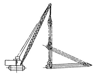 Примечание. Рабочие, занятые вертикальной регулировкой опор, засыпкой котлованов с уплотнением грунта и установкой анкерных оттяжек разбиты на 4 звена по 4 чел. в каждом. На двухпутных участках, оборудованных автоблокировкой, рекомендуется (по согласованию с поездным диспетчером) в соответствии с § 220 «Инструкции по движению поездов и маневровой работе на железных дорогах СССР» отправлять установочные поезда на перегон по сигналам автоблокировки, не ожидая закрытия перегона для производства работ. После этого машинист котлованокопателя, включив механизм опускания рабочего органа, опускает последний на грунт, включает транспортер, ковшовые цепи и приступает к разработке котлована. После достижения проектной глубины концевые выключатели срабатывают и ковшовые цепи останавливаются. Затем машинист поднимает рабочий орган из котлована, наклоняет его на выдвижной раме, переводит механизм из рабочего положения в транспортное и переезжает к месту следующего котлована. Размеры в плане котлована, разрабатываемого многоковшовым котлованокопателем ВК, позволяют производить установку опор без лежней. При необходимости установки опор с лежнями котлован разрабатывают двумя смежными параллельными вертикальными проходками. 2.3.8. Разработку котлованов буровой машиной осуществляют в следующем порядке. После прибытия на место работ машинист дрезины останавливает ее у места будущего котлована таким образом, чтобы после поворота фермы с рабочим органом на заданный угол центр бура совпал с центром котлована. Затем помощник машиниста дрезины освобождает домкраты, машинист бурового механизма поворачивает ферму на заданный угол, при котором расстояние от оси пути до центра бура будет равно расстоянию от оси пути до центра котлована, переводит раму бура в вертикальное положение, производит точную установку бура над центром котлована путем передвижки дрезины, затормаживает ее, опускает бур до соприкосновения с грунтом, опускает опорные домкраты и опирает их на грунт, приводит бур во вращение и начинает разрабатывать котлован. Цикл бурения состоит из заглубления бура на 0,7 - 0,8 м, подъема бура с грунтом выше поверхности грунта, разбрасывания грунта за счет центробежной силы, появляющейся при увеличении числа оборотов бура и опускания бура в котлован. Циклы бурения повторяют до достижения проектной глубины котлована, после чего механизм переводят в транспортное положение и переезжают к следующему котловану. Диаметр разрабатываемых буровой машиной котлованов в зависимости от диаметра бура составляет 500, 600 и 800 мм, что обеспечивает возможность установки в котлованы консольных опор, не имеющих лежней. 2.3.9. В комплект механизмов, работающих «с пути», в целях обеспечения разработки котлованов в различных грунтовых условиях для опор как с лежнями, так и без лежней, рекомендуется включить буровую машину, обеспечивающую разработку котлованов в тяжелых, а также в мерзлых грунтах, и многоковшовый котлованокопатель, обеспечивающий разработку котлованов для опор, имеющих лежни или опорные плиты, и для анкеров анкерных опор. 2.3.10. При работе с котлованокопателями надлежит руководствоваться инструкциями по их эксплуатации. Во время работы котлованокопателей нахождение на них посторонних лиц не разрешается. Запрещается также стоять у бу