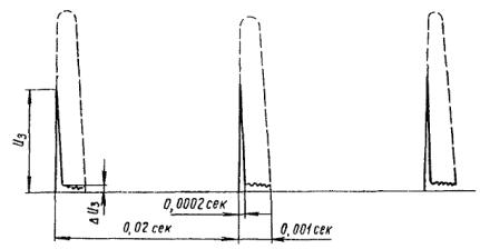 Значения U1 и Р1 указаны на заводском щитке трансформатора. Величины анодных токов и фазных напряжений вторичной обмотки (необходимые для выбора сечения проводов) для выпрямителя ИВС-200/10´6: Ud Id I2 U2 3300 в 1200 а 372 а 3020 в. Ток в каждой ветви уравнительного реактора равен половине выпрямленного. 5.3.51. Шкаф управления присоединяют к ртутным вентилям и панелям управления РВ по схемам, приведенным на рис. 70 и 71, а присоединение системы охлаждения ртутного выпрямителя к теплообменнику - на рис. 72. Рис. 70. Монтажная схема выпрямителя ИВС-200/10´6 со шкафом ШУ-1М Все контакты, а особенно контакты цепей зажигания должны быть проверены и подтянуты. Органы управления (ключи, рубильники, кнопки и т.д.) монтируют на щите управления подстанции. Однако на установках, где панель управления агрегатом очень загружена аппаратурой и приборами, а также для уменьшения длины проводов рекомендуется вблизи теплообменника устанавливать отдельный щиток, от которого можно питать электродвигатель насоса, подогреватель теплообменника, электродвигатель насоса первичного цикла и другие потребители электрической энергии. 5.3.52. Установка теплообменника производится согласно установочным чертежам системы охлаждения. Выпрямитель присоединяют к магистрали, идущей от теплообменника, при помощи резинового шланга диаметром 65 мм. Шланги длиной 14 м поставляются вместе с преобразователем. Укорачивание шлангов (длина одного шланга диаметром 65 мм равна 7 м) не рекомендуется. Если теплообменник устанавливают на расстоянии более 7 м от выпрямителя, то от теплообменника прокладывают водопроводные трубы необходимой длины и диаметра. Рис. 71. Схема шкафа управления выпрямителя Рис. 72. Схема охлаждения выпрямителя ИВС-200/10´6 от теплообменника АТВ-3000-П: 1 - бачок расширительный; 2 - термометр ртутный в оправе 0 ¸ 100 °С; 3 - вентиль запорный Д-40; 4 - вентиль запорный, муфта диаметром 1½"; 5 - электронагреватель (U = 220/380 в, Р = 2 квт); 6 - электродвигатель; 7 - насос водяной; 8 - манометр пружинный; 9 - термосигнализатор; 10 - терморегулятор; 11 - теплообменник; 12 - вентили выпрямителей; 13 - струйное реле диаметром 1½"; 14 - шланг дюритовый диаметром 27/31 мм; 15 - вентиль запорный диаметром ½"; 16 - вентиль для спуска воды диаметром ½"; 17 - вентиль для спуска воздуха; 18 - шланг резиновый тканевый, напорный диаметр 65 мм Необходимо обратить внимание на плотное и надежное соединение шлангов и труб при помощи стальных хомутов. 5.3.53. После подключения цепей зажигания, подхватывающих анодов и сеток к вентилям и питания к шкафу управления производят проверку настройки и фазировки напряжений на элементах аппаратуры собственных нужд. Методика проверки следующая: а) с помощью осциллографа ЭО-7 проверяется кривая напряжения заряда и разряда конденсатора (рис. 73) блоков зажигания (С1, С2, С3) (рис. 74). Напряжение на вход осциллографа следует подавать с высокоомного омического делителя напряжения, рассчитанного таким образом, чтобы подаваемое на входные клеммы осциллографа напряжение составляло примерно одну десятую часть от напряжения на конденсаторе, что предотвращает пробой на входе осциллографа. Напряжение на конденсаторе при резонансе должно иметь форму кривой (см. рис. 73). При этом величина амплитуды напряжения на конденсаторе должна составлять 1,2 - 1,3 U2 (U2 - амплитудное значение напряжения на вторичной обмотке зарядных трансформа