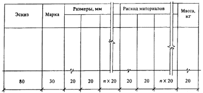 В графах таблицы указывают: в графе «Эскиз» - эскизное (схематическое) изображение изделия с основными (габаритными) размерами. Вместо переменных значений размеров проставляют строчные буквы латинского алфавита. Допускается эскиз изделия помещать над таблицей. В этом случае графу «Эскиз» исключают; в графе «Марка» - условное наименование (марку) изделия; в графе «размеры, мм» - основные размеры изделия. Количество колонок в графе должно соответствовать количеству переменных значений размеров, проставляемых на эскизе; в графе «расход материалов» - расход основных материалов, вид и единица измерения которых указываются в подзаголовках графы; в графе «Масса, кг» - массу изделия в килограммах. Допускается для изделий массой более 500 кг значение массы указывать в тоннах с изменением наименования графы на «Масса, т». Таблица может быть дополнена другими необходимыми графами, например, графой «Рис.», в которой указывается порядковый номер рисунка, если на эскизе входящие в номенклатуру изделия изображены на двух и более рисунках; графами с указанием значений расчетных нагрузок или несущей способности изделий; графой с указанием документа, в котором разработано изделие, и другими графами. Пример выполнения номенклатуры изделий приведен в справочном приложении 2. 3.2. Таблицы (ключи) для подбора изделий (элементов конструкций) выполняют по произвольной форме. 3.3. Рабочие чертежи изделий. 3.3.1. Всем изделиям, на которые разрабатывается проектный документ (чертеж), присваивают условные наименования (марки). Изделиям, предназначенным для самостоятельной поставки в качестве элементов конструкций, условное наименование присваивается в соответствии с требованиями ГОСТ 23009-78. При этом необходимо применять так называемую «закрытую» (условную) маркировку изделий с минимальным числом символов. Составным частям изделий присваивают традиционные условные наименования (марки). Например: КП - каркас пространственный, КР - каркас плоский, С - сетка, МН - изделие закладное, МС - изделие соединительное и т.д. 3.3.2. Документацию на изделия следует выполнять, как правило, групповым способом. В одну группу объединяют изделия одного наименования, единой конфигурации и одинаковых размеров (например, железобетонные изделия, изготовляемые в одной опалубочной форме). Допускается групповым способом выполнять документацию на изделия единой конфигурации, но с разными размерами при количестве переменных размеров, как правило, не более трех, один из которых может быть габаритным (длина, ширина, толщина, высота), или одинаковых габаритных размеров, но отличающихся наличием, конфигурацией, размерами и (или) местоположением некоторых элементов с обязательным раздельным изображением этих изделий. Переменные значения размеров обозначают на изображении строчными буквами латинского алфавита и приводят в таблице исполнений, помещаемой на свободном поле чертежа. Рекомендуется общее количество исполнений (количество изделий, объединенных в одну группу) и переменных данных принимать таким, чтобы таблица исполнений не имела продолжения на последующих листах документа. Допускается каждое значение переменных размеров (но не более трех) указывать на отдельной размерной линии, на продолжении которой делают запись: «для …(указать марку изделия)». Не допускается перем