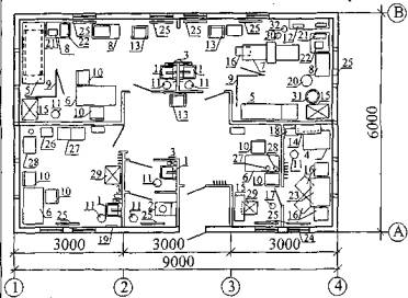 Рисунок 9 - Административно-бытовой комплекс на 100 человек При организации административно-бытовых комплексов и строительной площадки следует иметь в виду: - расстояние от рабочих мест до туалетов, помещений для обогрева, устройств питьевого водоснабжения должно приниматься не более 150 м; - при численности работающих в смену более 15 человек туалеты для мужчин и женщин предусматриваются раздельные; - при списочном составе от 50 до 300 работающих должен быть предусмотрен медицинский пункт: площадью 12 м при списочной численности от 50 до 150 работающих и 18 м2 - от 151 до 300 работающих. - при численности работающих в смену более 200 человек следует предусматривать столовую, до 200 человек - столовую-раздаточную. При численности работающих в смену менее 30 человек вместо столовой-раздаточной допускается предусматривать комнату приема пищи.