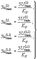 После выполненного расчета выбираются наименьшее 3 u0min и наибольшее 3 u0max значения, на их основе определяется расчетный диапазон, который сравнивается с имеющимся у индикатора ЛИФП-В рабочим диапазоном напряжений.