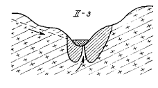 Примечание. Q - расход поверхностных или грунтовых вод выше стесненного участка; Q1 - расход ниже стесненного участка; Q2 - наледный расход; НВ - глубина водотока до водоупора выше стесненного участка; Н - глубина воды на стесненном участке; d - глубина промерзания за пределами стесненного участка; dM - глубина промерзания на стесненном участке; hП - глубина потока на стесненном участке; dw - глубина уровня грунтовых вод; m - высота переката. По степени опасности наледи разделяют на следующие виды: неопасные, не оказывающие вредного воздействия на инженерные сооружения; опасные, которые вызывают нарушение нормальной работы сооружений; очень опасные, представляющие непосредственную угрозу движению транспорта и устойчивости сооружений. По длительности существования наледи бывают: сезонные, стаивающие летом полностью, и многолетние, часть которых не успевает растаять летом и переходит на следующий зимний сезон. 1.7. Сложные природные условия, в которых развиваются наледи, в сочетании с дополнительным влиянием на их развитие дорожных сооружений, обусловливают многообразие наблюдаемых в полосе дороги наледей. Генетические типы наледей, их морфологические характеристики и ледотермический режим приведены в табл. 1. Вредные воздействия наледей на искусственные сооружения1.8. Наледи оказывают значительные вредные воздействия на искусственные сооружения и часто создают затруднения при их эксплуатации. Наледи могут: 1) закупоривать льдом отверстия малых искусственных сооружений и затруднять пропуск весенних вод; 2) затоплять проезжую часть подходов к искусственным сооружениям и затруднять движение транспорта; 3) деформировать искусственные сооружения при образовании около них наледных бугров; 4) создавать условия для размыва конусов и земляного полотна подходов, а также изменения конфигурации русла водотока при стоке весенних вод по наледному льду. 2. ИЗЫСКАНИЯ И ИНЖЕНЕРНО-ГЕОЛОГИЧЕСКИЕ ОБСЛЕДОВАНИЯ ПЕРЕХОДОВ ЧЕРЕЗ ВОДОТОКИ С НАЛЕДЯМИОсобенности изысканий2.1. Места переходов через малые и средние водотоки, где наледи оказывают наибольшие воздействия, определяются рациональным положением трассы, которая должна иметь высокие транспортно-экономические показатели. Однако при изысканиях автомобильных дорог необходимо стремиться выбирать такое направление трассы, которое без существенного ее ухудшения в плане и продольном профиле позволяет обходить участки с большим количеством наледей. Технико-экономическое сравнение вариантов трассы должно учитывать затраты на постройку противоналедных сооружений, удорожание строительства на наледных участках искусственных сооружений с увеличенными отверстиями и более высокими подходами, а также затраты на борьбу с наледями при эксплуатации. 2.2. Наледеопасными участками являются: склоны северной экспозиции с неглубоким залеганием вечномерзлых грунтов, имеющие надмерзлотные воды; групповые выходы родников подземных вод; сильно заболоченные склоны; устья водотоков, особенно места слияния нескольких водотоков; водотоки с распластанными руслами, малыми глубинами и выступающими из воды грядами галечника; перекаты со скальными выступами и валунами; порожистые участки. 2.3. Не опасны в отношении наледеобразования и благоприятны для прокладки трассы водораздельные участки, склоны антикли