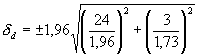 где δd - погрешность измерения диаметра пучка лазерного излучения (в интервале ± 25 % с установленной вероятностью 0,95); δопт - погрешность, вносимая аберрацией оптической системы (в пределах ± 5 %); δF - погрешность определения фокусного расстояния оптической системы (в пределах ± 10 %);